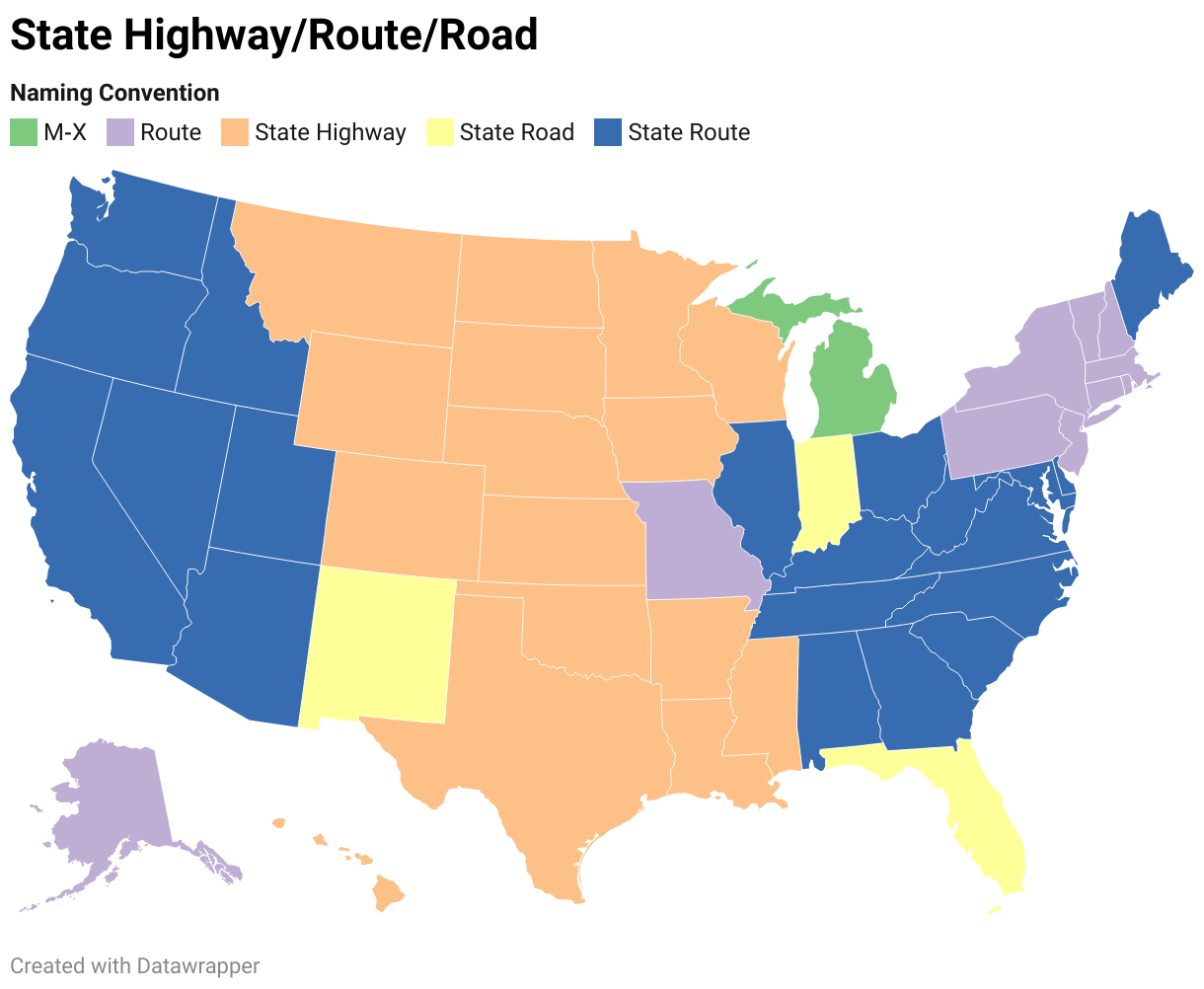 State Departments of Transportation use different terminology for their designated road systems, with some states using “state highway,” others “state road,” and still others “state route.” These distinctions, though seemingly minor, often reflect historical and legislative traditions within each state. The choice of a particular term can be tied to the legal language used when the road network was first established or expanded. For example, a state might have initially defined its network as a “system of highways” for commerce and travel, while another may have focused on creating a “system of roads” for local and inter-city connections. The term “state route” is often a more modern designation that emphasizes a specific numbered path for navigation rather than the physical characteristics or purpose of the road itself. While the exact reasoning for each state’s choice is complex and rooted in its unique history, the map on the right provides a visual guide to which term is used where.